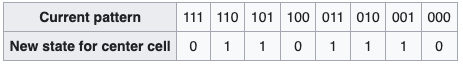 Steven Wolfram simplified the concept of cellular automata using just 8 bits to create 256 possibile rules, and discover this: